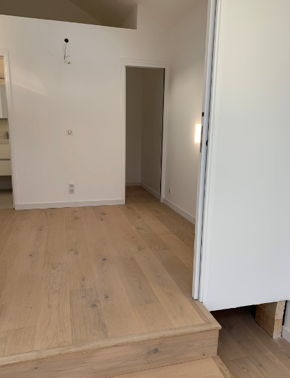 Le parquet cérusé est recouvert d’une pâte pigmentée qui s’insère dans les pores du bois, contrastant avec les pigments naturels du parquet.